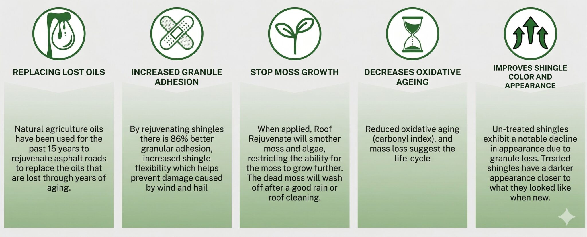 Our promise: Roof Rejuvenate technology will extend the lifespan of your roof so you won’t have to replace it for the next 5 to 15 years.