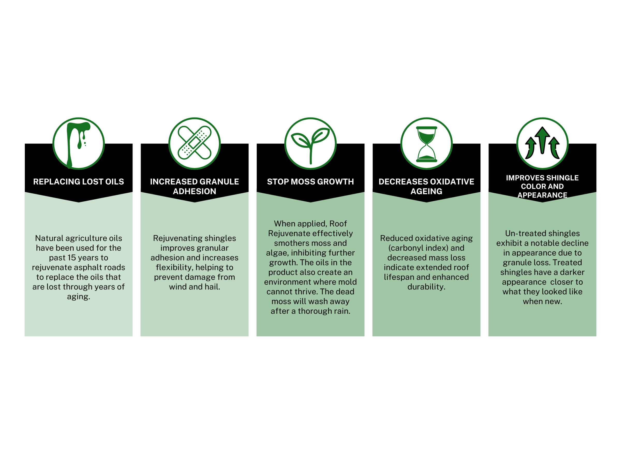 Roof Rejuvenate offers a beneficial 5-year transferable warranty, providing homeowners with peace of mind by ensuring that the roof retains oil and continues to function effectively.